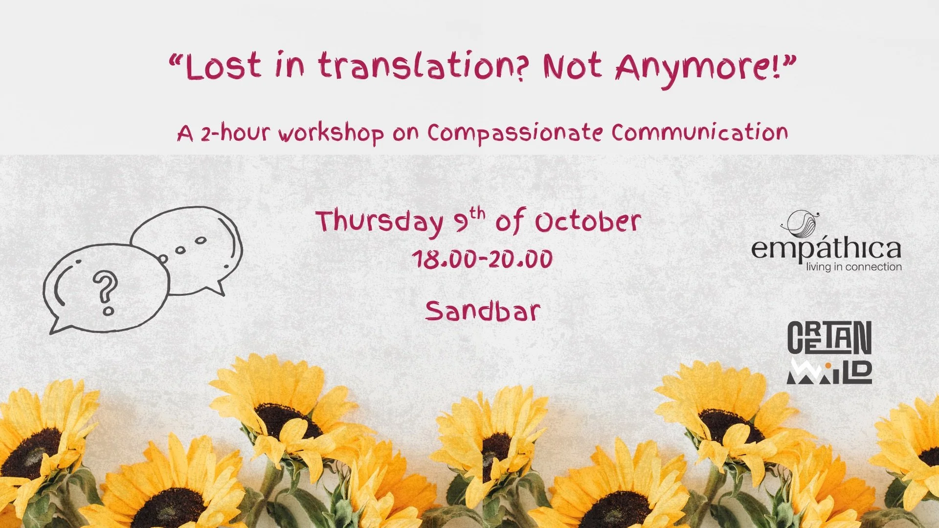 *Το εργαστήριο αντλεί έμπνευση από τις αρχές της Μη Βίαιης Επικοινωνίας, όπως τις έχω κατανοήσει.